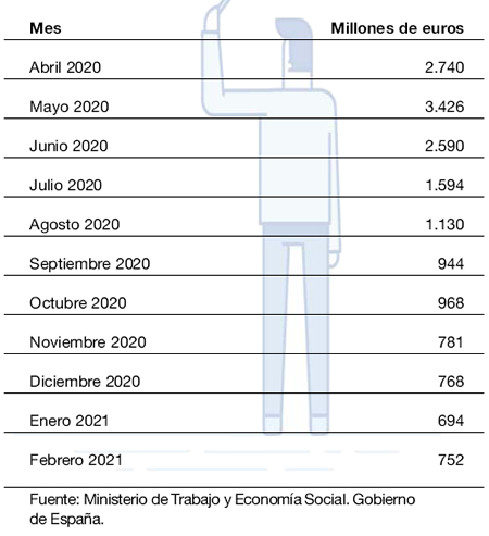 Desde que empezó la pandemia, esta ha sido la evolución del gasto en prestaciones ERTE: