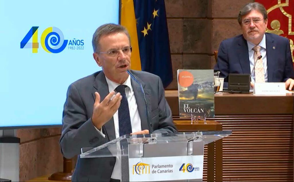 Los decanos de los colegios notariales de las Islas Canarias, Cataluña y Valencia, Alfonso Cavallé, José Alberto Marín y Francisco Cantos, respectivamente; presentaron el pasado 15 de septiembre el número extraordinario de la Revista Atlántica del Derecho, la Historia y la Cultura: El Volcán en el Parlamento de Canarias, en Santa Cruz de Tenerife. Este número especial de la revista recoge -en 850 páginas- el trabajo realizado por los notarios que se desplazaron hasta la isla de La Palma para atender a los afectados por la erupción del volcán Cumbre Vieja, además de incorporar contenidos científicos e históricos de interés.