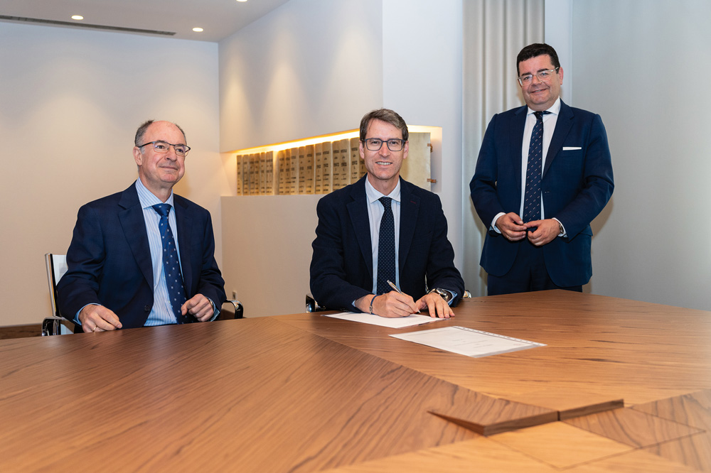 Al finalizar el acto, Gonzalo Capellán y José Ángel Martínez Sanchiz firmaron en el libro de honor del colegio para dejar constancia de su visita a la corporación notarial.
