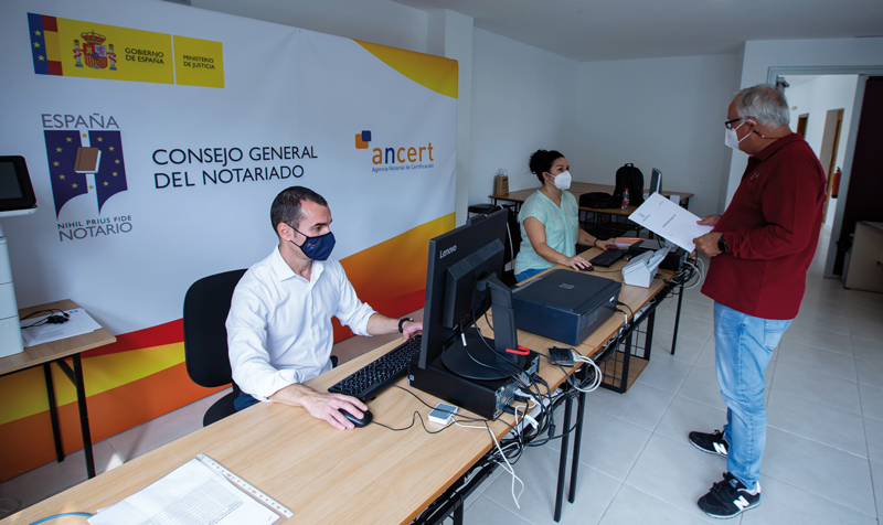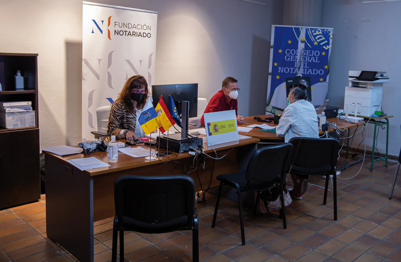 Estos tres colegios notariales, con la ayuda económica y tecnológica del Consejo General del Notariado, abrieron en noviembre de 2021 tres notarías provisionales, que se instalaron en los ayuntamientos de El Paso, Los Llanos de Aridane y Tazacorte.