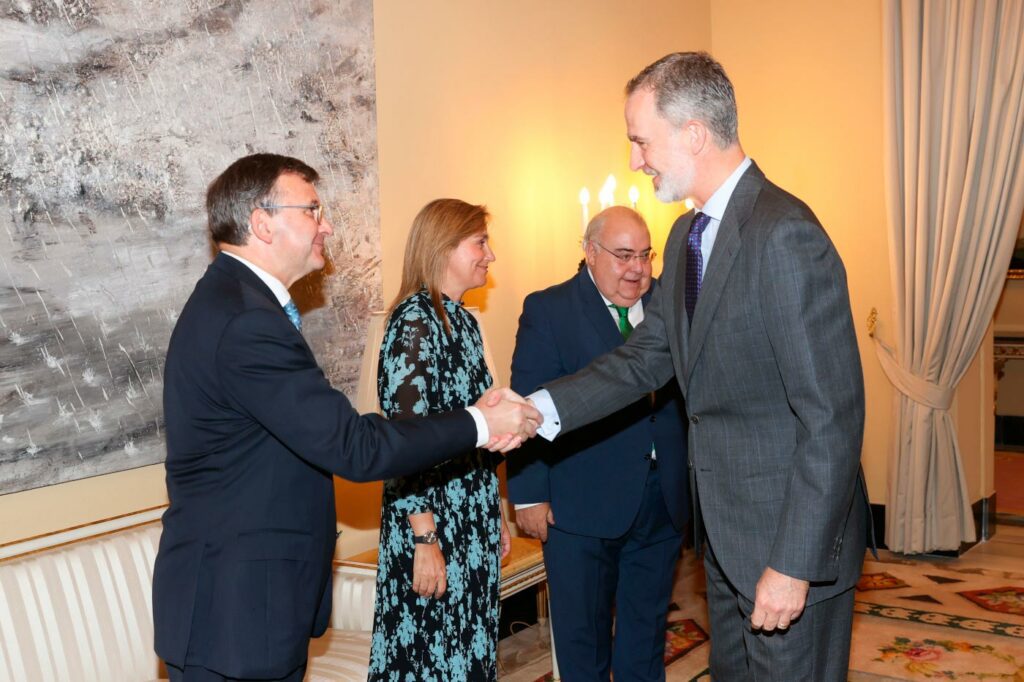 Durante el acto los notarios tuvieron la posibilidad de realizar un coloquio con Su Majestad, momento en el que el número uno de la promoción, Juan José Pretel, pronunció un discurso. “Ahora somos notarios en activo en ciudades y pueblos repartidos por todo el territorio nacional, y el hecho de que nos reciba la más alta institución del Estado es muestra de la importancia de nuestra función y de la grandísima responsabilidad que la misma conlleva, pues ejercemos nada menos que la dación de fe pública por delegación del propio Estado”, señaló.