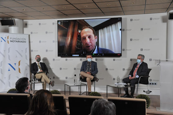 La primera mesa redonda se centró en el Estado actual de la Custodia del Territorio. De la conservación pública a la intervención ciudadana. Moderada por Ignacio Ferrer, decano del Colegio Notarial de Extremadura, miembro de la comisión permanente del CGN y patrono de la Fundación Notariado, contó como ponentes con Carlos Javier Durá, investigador del CIEDA; Antonio Ruiz Salgado, abogado y consultor jurídico ambiental, asesor jurídico del Foro de Redes y Entidades de Custodia del Territorio; y Federico Cabello de Alba, notario y miembro de la Comisión de Custodia del Territorio del CGN (quien participó de manera telemática).