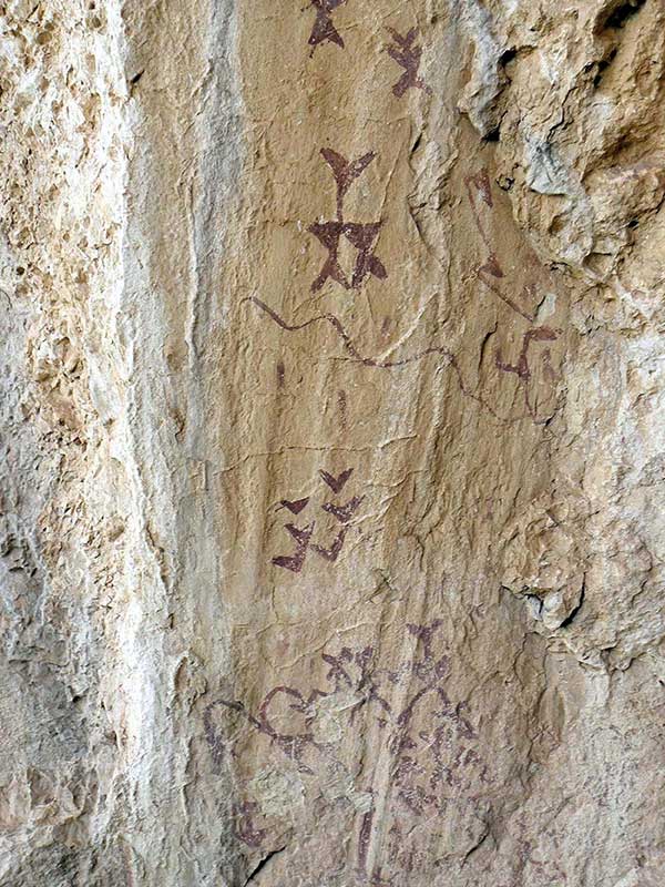 Hablamos, en fin, de importantísimas muestras de, principalmente, arte rupestre esquemático en la Península Ibérica. Si el viajero es entusiasta de esta parte de nuestra historia, tiene donde elegir en Vélez Blanco –aunque mejor es darse un tiempo para verlo todo–, porque además de los anteriormente citados, están el abrigo de Las Tejeras, en el cerro del mismo nombre, con pocas pinturas, pero interesantes; los abrigos del Estrecho de Santonge, con dos paneles de arte esquemático y uno de arte rupestre levantino, situados, además, en un entorno de enorme belleza paisajística; el abrigo de Gabar, en el cerro homónimo, donde las figuras onduladas o en zigzag comparten panel con alguna representación humana, un ciervo y otros animales; los abrigos de los Lavaderos de Tello, en un meandro del arroyo del Moral, que son cinco espacios en total, uno de ellos con figuras de arte levantino; y la cueva de Ambrosio, que se considera un punto de referencia para el estudio del Paleolítico Superior y donde además de las pinturas se encontraron abundantes muestras de material lítico solutrense.